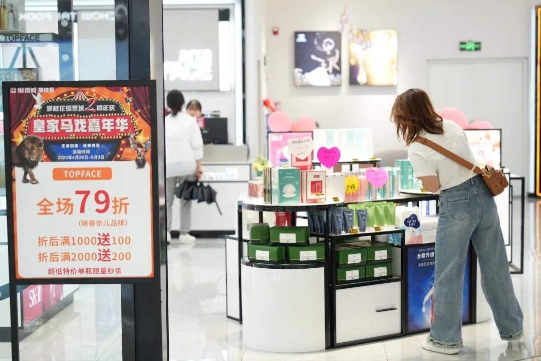 在“五一”消费“黄金档”,银泰商场结合2周年庆活动,推出美食、服饰、数码、化妆品等满减、满额赠礼、购物抽手机等全场促销活动,吸引着大批市民游客前来光顾。4月29日至5月1日,客流累计约6万人次,销售额500万元以上。