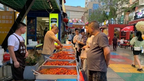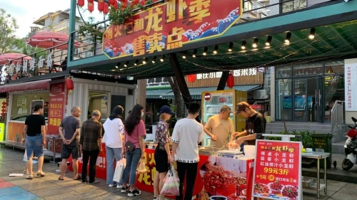 当天下午,记者来到烟火仁和国朝风情街,小龙虾的香味早已弥漫整个街区,蒜蓉龙虾、香辣龙虾……各种口味的龙虾挑逗着过往吃货的心,“太好吃了,每个口味的都尝了一下,而且商家推出了折扣活动,价格也不算贵,实现了小龙虾自由”。据街区工作人员王代俊介绍,活动开始以来,街区每天的客流量近万人,龙虾累计销量超过2000斤。