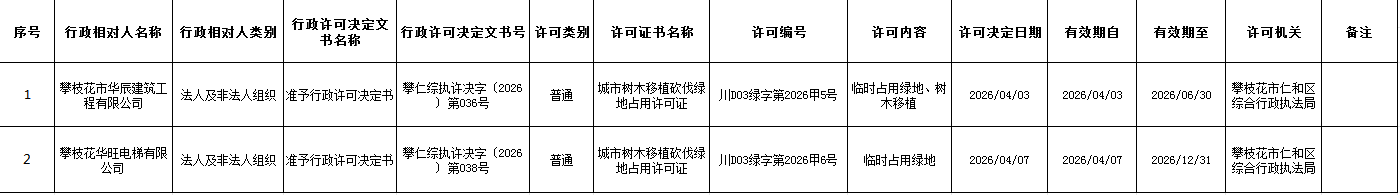 仁和区综合行政执法局行政许可信息公示(4.7-4.10)