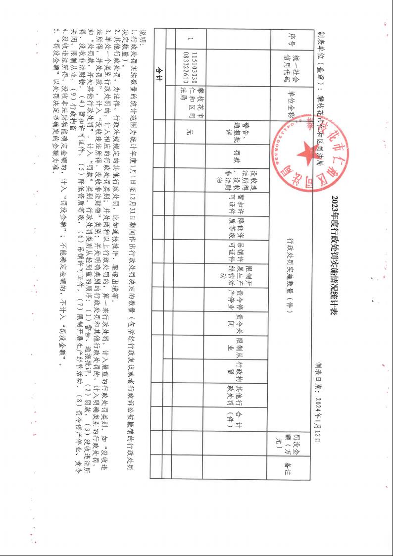攀枝花市仁和区司法局2023年度行政许可、行政处罚、行政强制、行政检查实施情况公示表