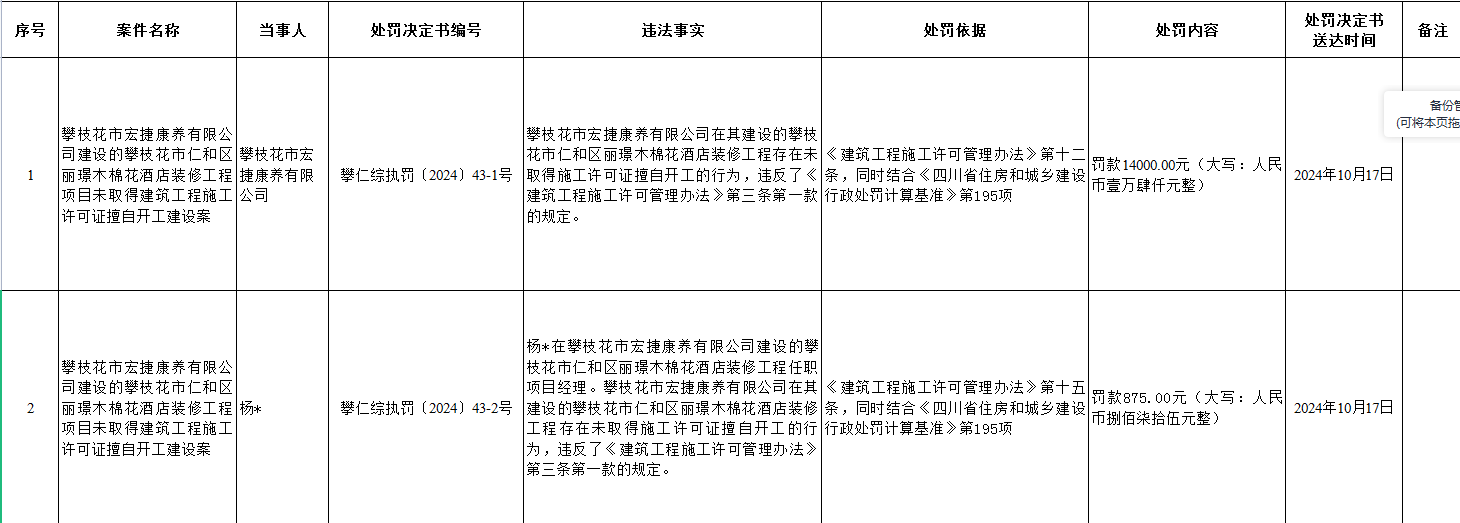 攀枝花市仁和区综合行政执法局2024年行政处罚案件信息公示(10月23日)
