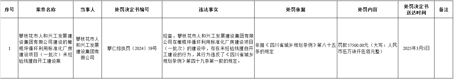 攀枝花市仁和区综合行政执法局2025年行政处罚案件信息公示(3月7日)