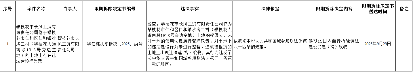 攀枝花市仁和区综合行政执法局2025年案件信息公示(10月11日)