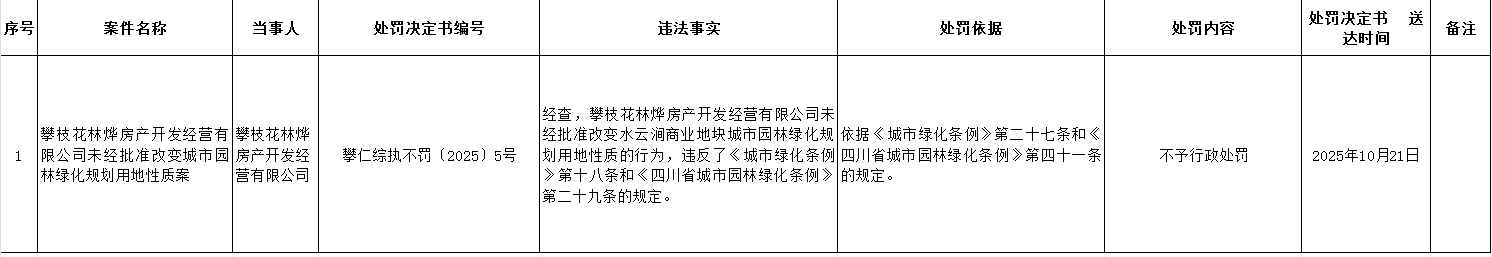 攀枝花市仁和区综合行政执法局2025年行政处罚案件信息公示(10月22日)
