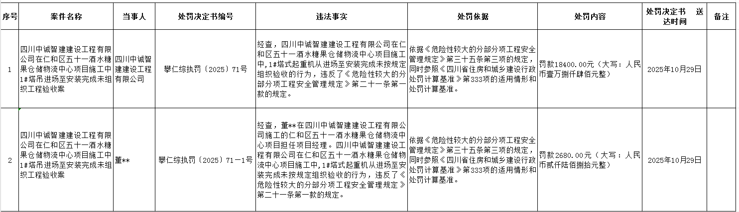 攀枝花市仁和区综合行政执法局2025年行政处罚案件信息公示(10月30日)