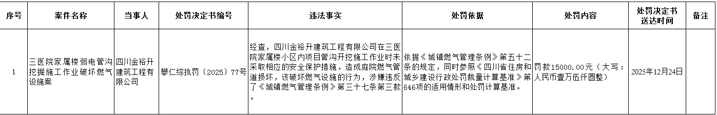 攀枝花市仁和区综合行政执法局2025年行政处罚案件信息公示(12月29日)