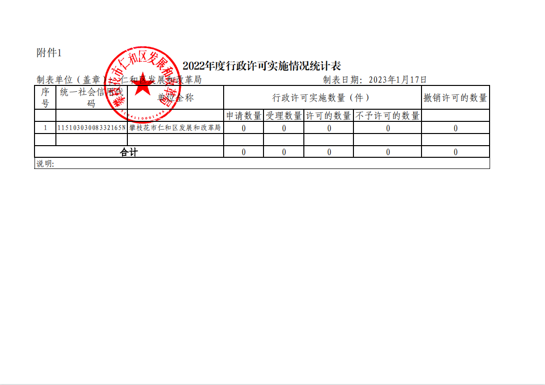 仁和区发改局2022年度本机关实施行政许可、行政处罚、行政强制和行政检查的情况